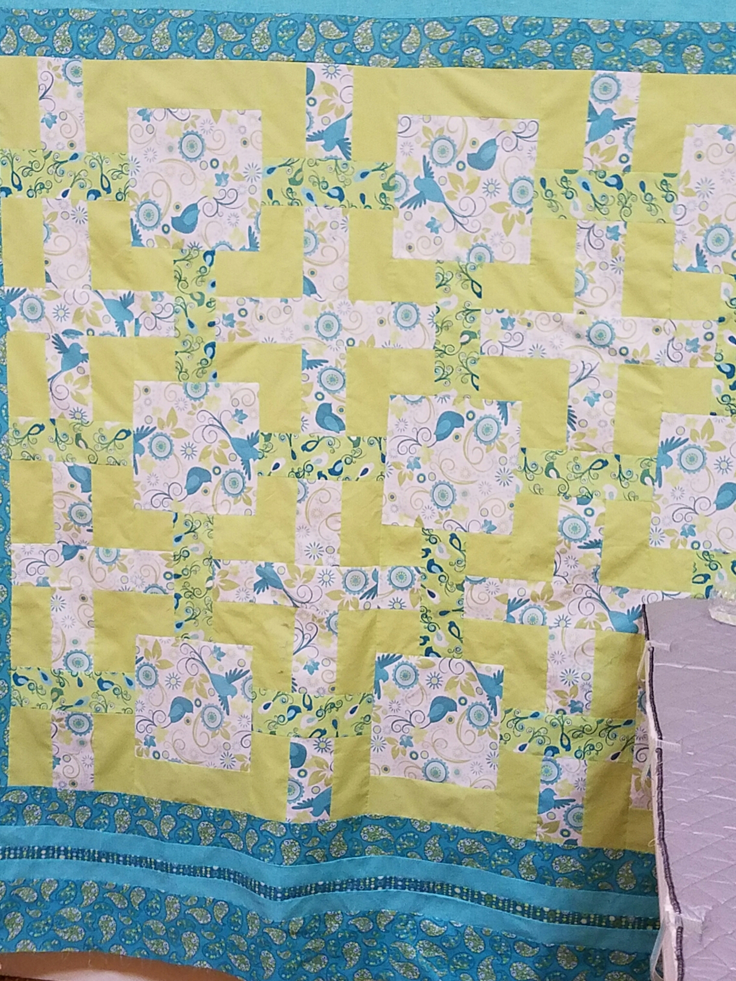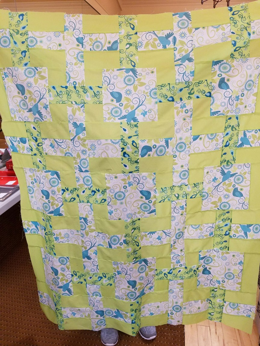 Well, I got everything cut as instructed. I had most of this fabric in my stash, likely for years…. Had to buy a couple of accent pieces, that’s it. I like lime green and teal together. Hoping it turns out to be something awesome! We shall see.