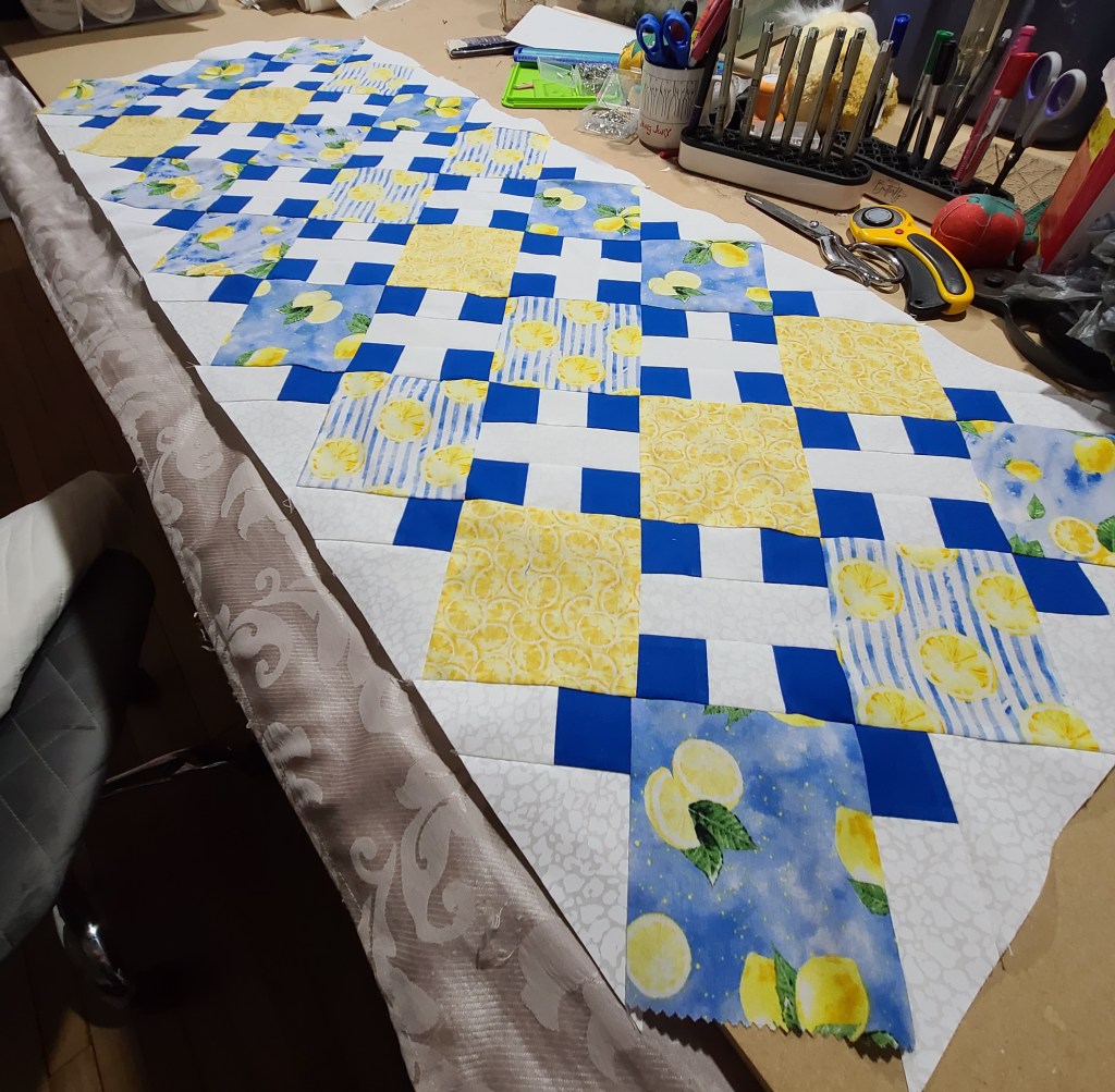 So, I needed a gift, so I created this table runner. It was actually a challenge I started last year about this time and never finished. I don’t do well with quilting deadlines. I used those cupcake papers (Like the layer cake ones, only for charms).