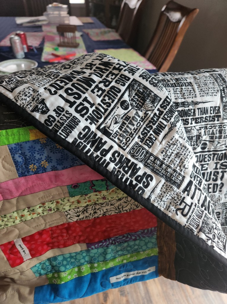 This is my Kite quilt. It came out cute. It has some shirt 3d kite tales. The back has grey fleece, so super soft. This was just me entertaining myself. Nothing special and I did not have anyone in mind when I make it.